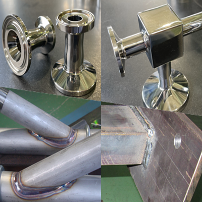 弊社は、各機器の製作や生産設備の設計から製作・施工まで、幅広く行っております。金属加工では主にスチール、ステンレス板の切断加工、曲げ加工、溶接加工を行います。