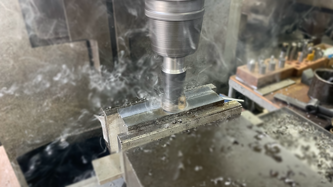 汎用フライスを用いて、平面や曲面加工、溝、穴あけなど幅広い加工が可能です。